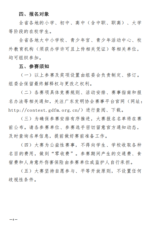 关于第六届广东省青少年创新思维及科技实践大赛的补充通知