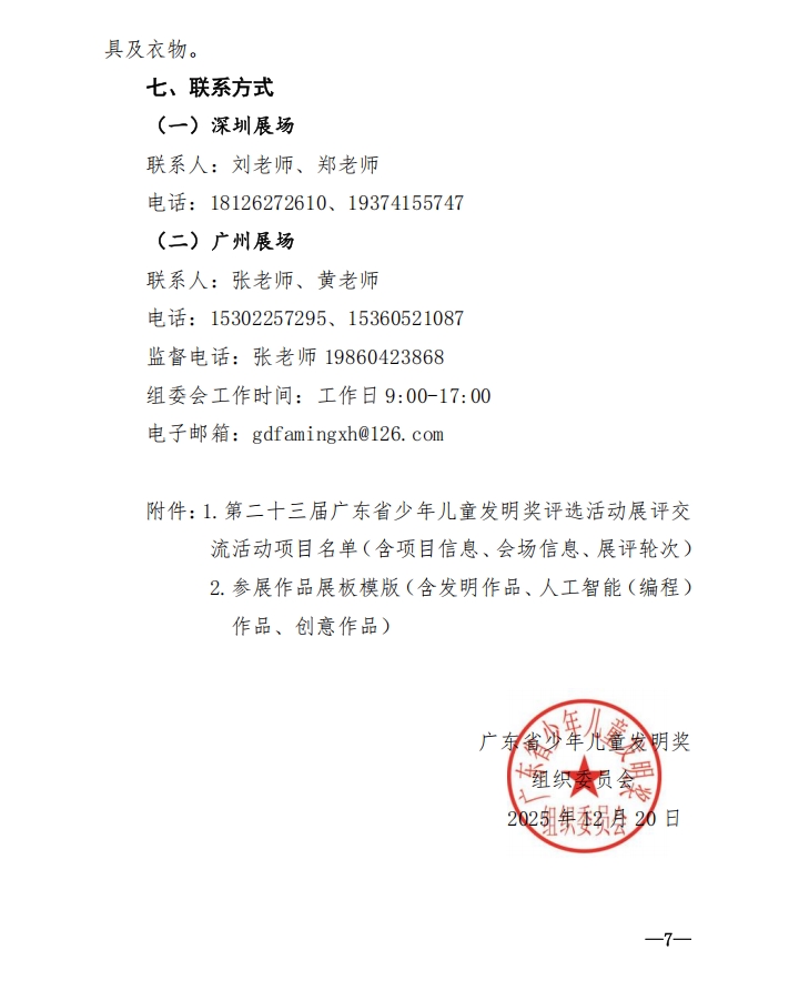 关于举办第二十三届广东省少年儿童发明奖展示交流活动的通知20251220.pdf